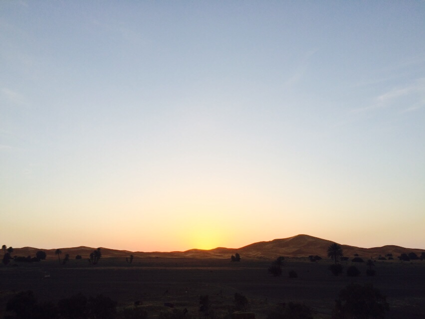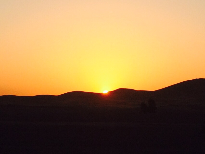 遠くの砂の山から顔を出す太陽を見て清々しい気持ちになりました。