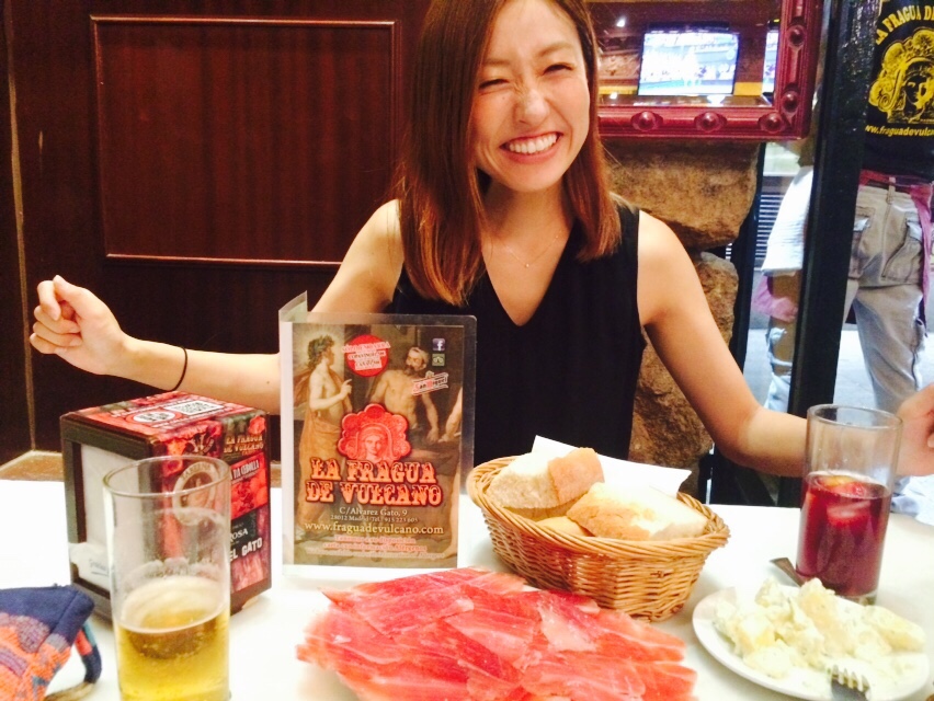 ビールもサングリアもおいしいし、生ハムもアヒージョも最高♡